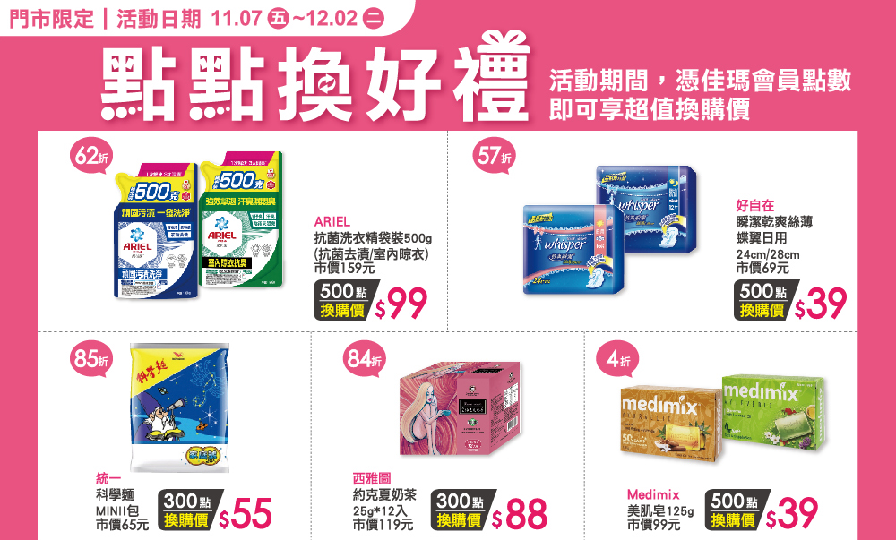 活動期間憑佳瑪會員點數,即可享超值換購價。