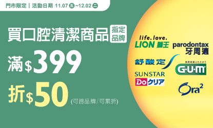 活動辦法:買口腔清潔商品指定品牌滿399元