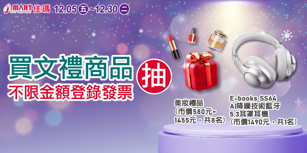 (1). 中獎名單於2026/01/16公告於佳瑪得獎名單網頁,如遇天災地變等不可抗力之因素,本公司保有權更改抽獎公告日期。