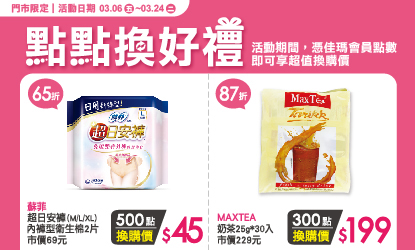 活動辦法:活動期間憑佳瑪會員點數