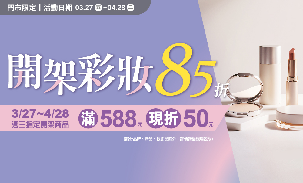 活動辦法:開架彩妝85折